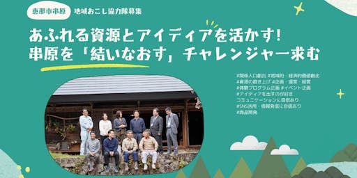 2024/09/18岐阜県恵那市では、現在3地域、3つの業務でフリーランス型の地域おこし協力隊を企画募集しています。おためしやインターンをとおして、しっかり確認し合いながら、本エントリーへのご応募をしていただける方を関係者一同お待ちしております。