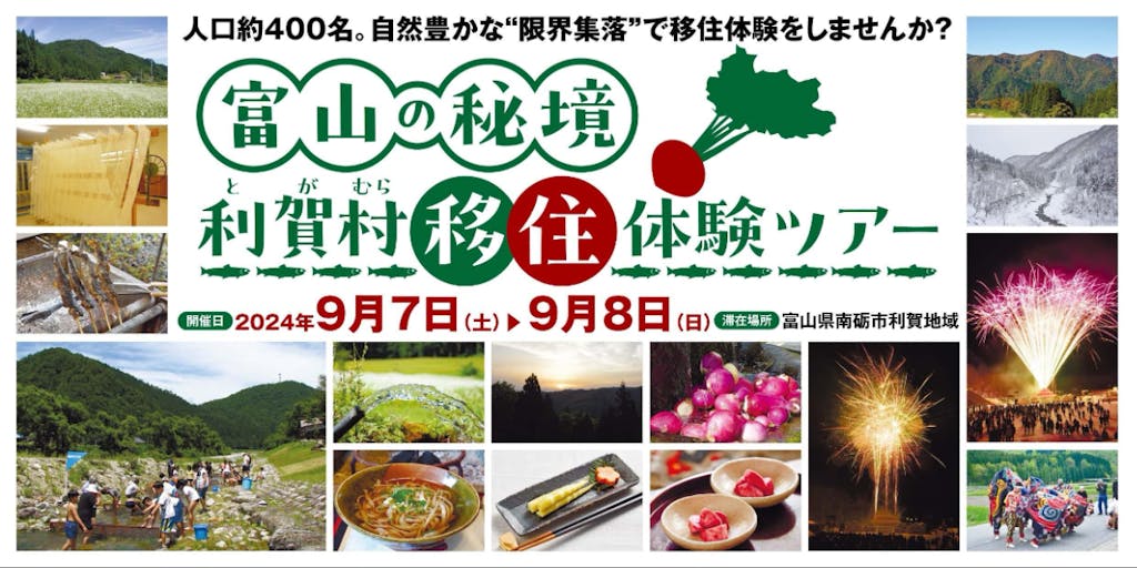 【9月7日(土)開催】富山の秘境 利賀村移住体験ツアー<1泊2日>