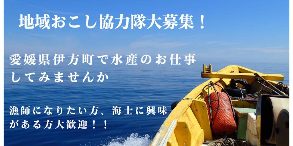 愛媛県伊方町では、昔から様々な漁法で漁業が営まれており、町の基幹産業となっています。 しかし水揚量の減少や担い手の不足など、様々な課題に直面しています。 そこで、水産物の広告宣伝やブランド化、海洋環境の保全などに携わりたい方、漁師として働きたい方など、水産業を一緒に盛り上げてくれる方を募集することにしました。