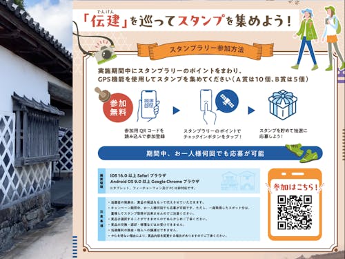 ・スケジュール: 《内容・参加方法》 実施期間中に、全国129カ所の伝建地区を廻ると、デジタルスタンプを獲得できます ※要スマートフォン
