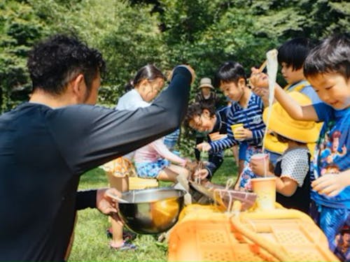 ① 都会でできない、生み出す体験!薪を割って焚き火など・・! ②地元の方、移住者の方、おじいちゃんおばあちゃんから子供まで交流できる! ③体験の振り返りでは、自分たちだけの思い出をイラストに記録するグラフィックレコーディングをプレゼント! ④ユニークな生き方をしている人に会える!