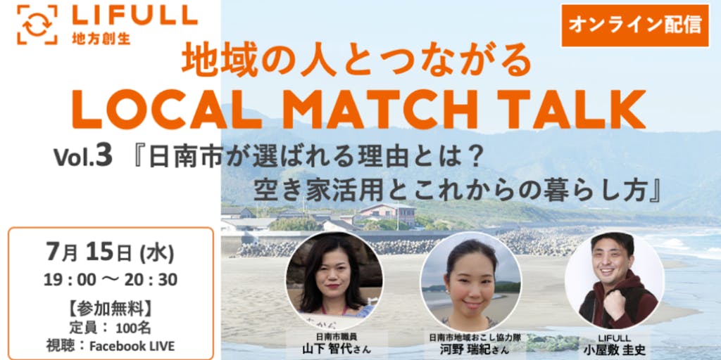 【7/15(水) オンライン】地域の人とつながる LOCAL MATCH TALK 〜日南市が選ばれる理由 空き家活用とこれからの暮らし方〜