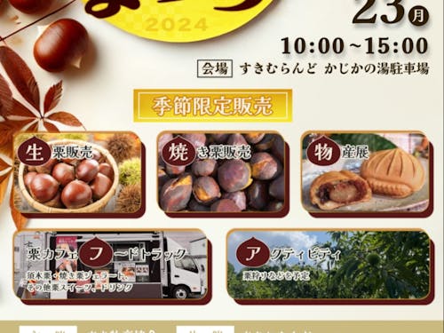 9月22日・23日はすき栗まつりが開催され、栗やスイーツの販売だけでなく、栗狩りなどのアクティビティも体験できます。