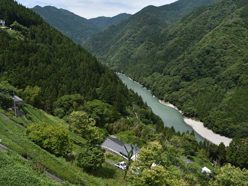 村の約94%が山林で、村内には見渡す限り山!村の中心を流れる一級河川の天龍川!まさに大自然が織りなす壮大な風景の中で、天龍村の人々は暮らしています。 天龍村といえば、中井侍の急傾斜地から地区の名人たちによって生み出される幻の銘茶「中井侍銘茶」や、村の農家で組合を作り、協力し合って生産を続ける巨大なナス「ていざなす」が有名ですが、忘れてはならない一番の魅力は「温かい村民気質」。 初めて訪れた方に対しても「来てくれるだけでうれしいんだに」「おかえり」と、とてもやさしく出迎えてくれます。 村内では休日に畑仕事をする方が多く、「白菜できたがいらんか?」「キュウリいりゃあ(=欲しいなら)あるでもってけ!」と、近所同士で分け合う光景が風物詩です。