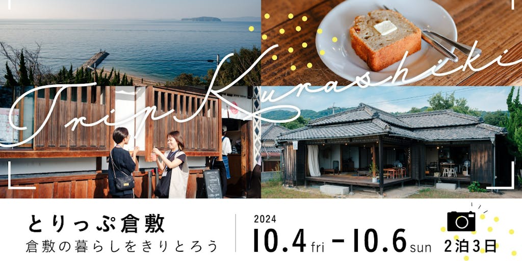 2024/09/15穏やかな瀬戸内の海と豊かな緑。歴史と文化が自然とまちに溶け込む倉敷市。その美しい景観や情緒的な雰囲気に魅せられた人々が、数多く移住してきています。 そんな“感性に響くまち・倉敷”で、プロのフォトグラファーがアテンドするフォトツアーを開催。 ツアーでは人気のフォトスポットを訪れるのはもちろん、在住者だからこそ知っている倉敷に触れたり、若手クリエイターとの交流会なども予定しています。 感動的な風景も、何気ない日常も。 あなたの心の琴線に触れた倉敷の姿を、ぜひカメラに収めてください。