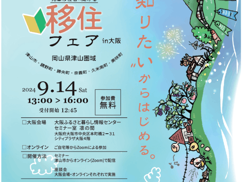 主催:岡山県・津山市・鏡野町・勝央町・奈義町・久米南町・美咲町/共催:認定NPO法人ふるさと回帰支援センター 大阪ふるさと暮らし情報センター