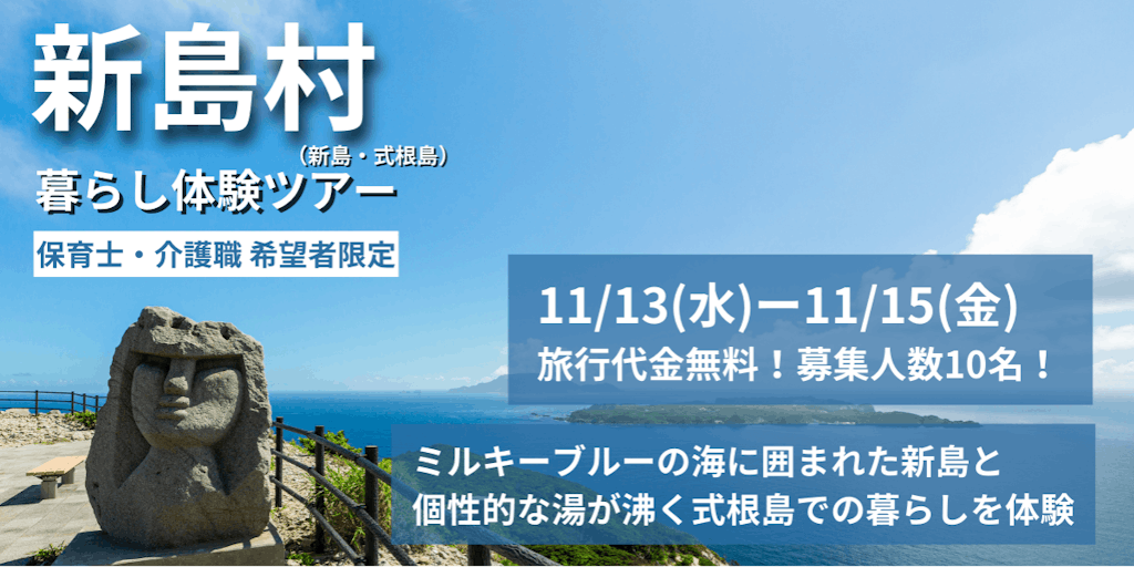 保育士・介護職希望者限定!新島村(新島・式根島)暮らし体験ツアー