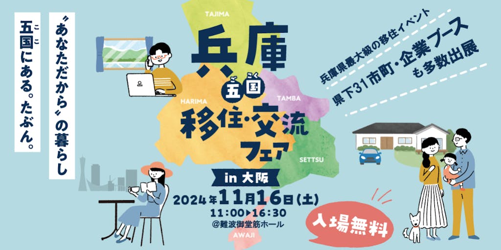 2024/11/0811/16(土)に大阪にて兵庫県最大級の移住イベント「兵庫五国移住・交流フェア」を開催いたします!