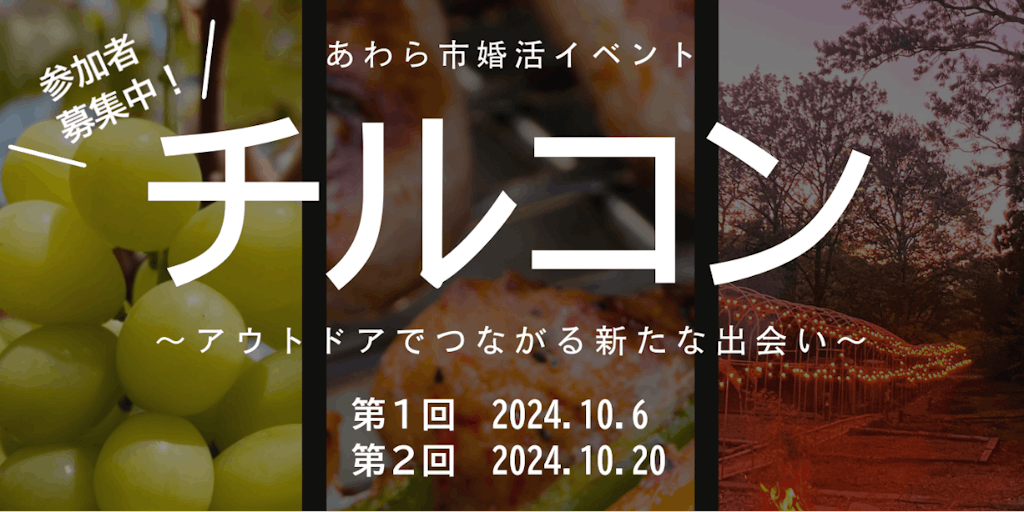 2024/10/01昨年大好評だった、市主催の婚活イベントを今年も開催します! みんなでぶどう狩りやバーベキューなどアウトドアを楽しみながら、ステキな出会いを見つけませんか? お気軽にご参加ください!
