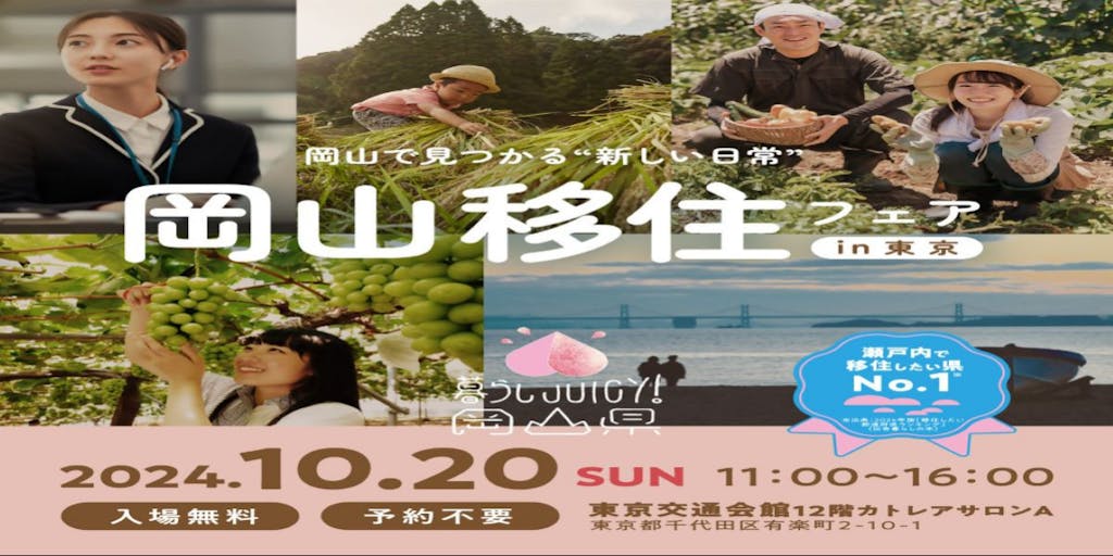 2024/10/18移住相談会「岡山で見つかる“新しい日常” 岡山移住フェアin東京」が10月20日(日)に開催されます。 この相談会には、岡山県内19市町、就職相談ブースなど多数出展します。もちろん、われらが新見市も出展します。 新見市では、“起業”“二拠点居住”“地域おこし協力隊”に興味ある方大歓迎!もちろん、ざっくりと地方移住を考えてるという方もOK!ぜひ、みなさんお越しください!