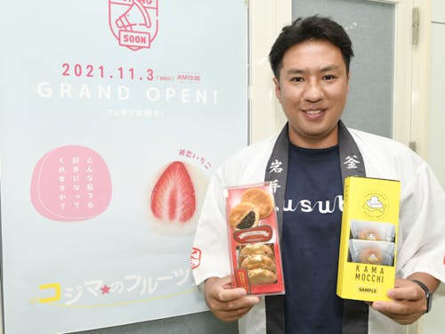 「有限会社小島製菓」の歩みは飴細工の販売から始まります。その後、和菓子店としてお餅やお菓子などの製造、小売店への卸として、市内だけでなく県内の大型スーパーマーケットや百貨店へと販売網を広げていきました。「BtoB」でビジネスを展開していた小島製菓に転機が訪れたのは、東日本大震災でした。