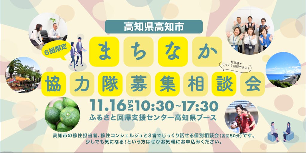 この度、令和7年4月採用の高知市地域おこし協力隊の募集ミッションについて、高知市の移住担当者が東京・有楽町へ出張し、具体的な相談を受け付ける「出張相談会」を開催します!