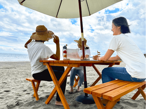 WEBマガジン「うみべのくらし」にも登場する、黒潮町で人気のおかし屋さんやコーヒー屋さんや、本屋さんの出店もあり、砂浜で楽しめます♪ たくさんの方と出会い、お話してみてください♪ 畳に座れます!が、ぜひお気に入りのイスも持参して、イベントも楽しんでくださいね。