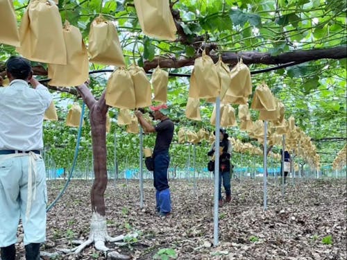 北房のぶどうは他の果樹と比べても、稼げる作物です。 すでに高価格帯で販売できるブランド力があるうえ、日植ファームでは法人ならではの「我流ではなく、基礎をしっかりとおこなう」「販路が確立されている」を押さえています。 また、もしぶどう農家として独立した場合、ぶどうの木の生育に3-4年かかるのですが、その期間も日植ファームで働きながら、自分たちのぶどうの木を育てていくことができます。収穫したぶどうを日植ファームで買い取ることもできますので、販路がなく、困るということもありません。