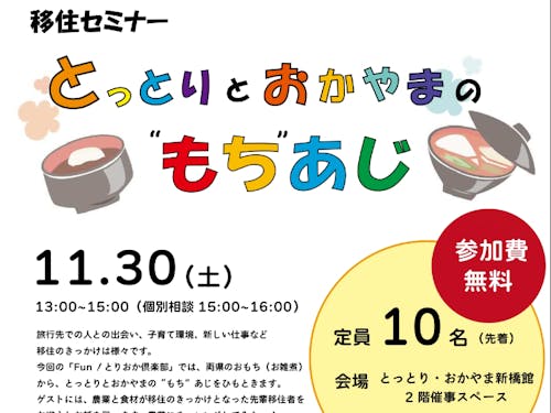 【満員御礼!】【とっとりとおかやまの”もち”あじ】鳥取県・岡山県連携移住イベント