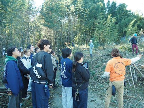 これらの課題に取り組むため、市内でもNPO法人や地域団体、高校生などが竹林整備を進め、春先に生えてきた竹をメンマとして食品化したり、ポーラス竹炭をつくり農業への転用を行っていますが、竹の繁殖スピードのほうが速く、住民だけでは対応できないことも…。 竹林整備は特別な技術がなくても、老若男女問わず誰でも取り組める活動でもあるので、都市部の大学生も巻き込み、様々な世代の人が、楽しく交流しながら竹林整備を行う仕組みをつくろうと取り組んでいます。