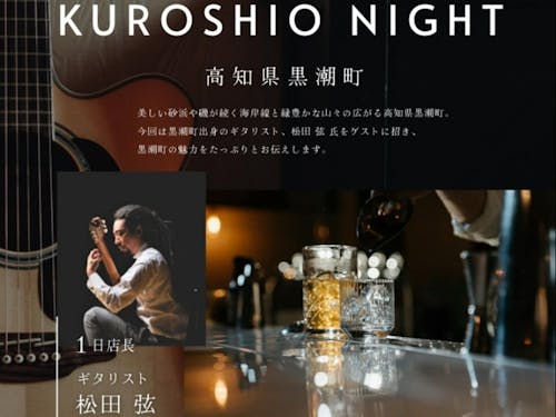 当日は町出身のギタリスト 松田弦 さんをお招きし、黒潮町の特産品も提供しながら魅力をたっぷりお伝えします。 どなたでもお気軽にお越しください!