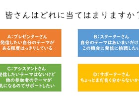 「プレゼンテーション大会」は勝央町文化ホールを会場予定ですが、遠方の方はオンラインからでも発表できるよう準備中です。ぜひ、発表の場でアウトプットまでを一緒に目指しませんか。