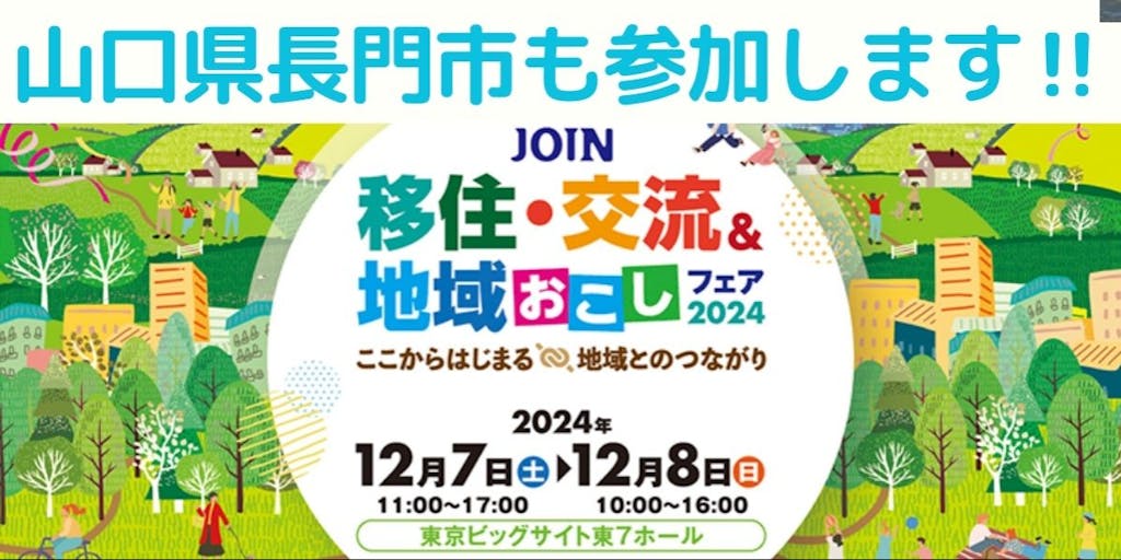 2024/12/11全国から200を超える自治体が集まり、自治体の担当者から直接話が聞けるJOIN移住・交流&地域おこしフェアに、山口県長門市も参加します!!