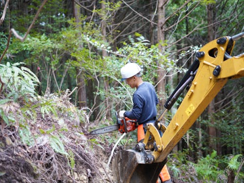 ■そうなると、自伐型林業をされている方は今どのように収入を得ているのですか? 作業道1メートルや間伐1ヘクタールにつき、補助金が支給されるような仕組みになっているので、「木を太らせる」フェーズでも収入を得ることができます。この補助金と、伐採した木の売上で年間の生計を回すようなイメージですね。 私の場合は自伐型林業を主業としながら、副業として土木施工や営業事務支援の業務委託も請けていて、自分のこれまで培ってきたスキルを活かしつつ様々な仕事を組み合わせています。晴れた日は朝から山で作業し、雨の日は事務作業など、その他に単発で伐採の仕事を依頼されることもあります。林業一本でも生活は成り立つと思いますが、私は日によって働き方を変えながらいろいろな仕事を組み合わせて働いています。 林業は年間を通じて安定した需要がある産業で、長期的かつ持続的な経営が可能です。担い手が少ない分、とても需要が高い仕事ですよ。