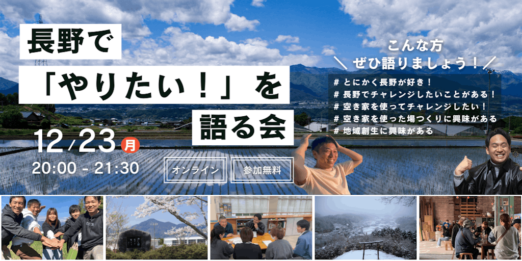 是非この機会に「オンラインイベントに参加する」という一歩からいかがでしょうか? 長野の未来に興味ある、あなたのご参加を心よりお待ちしております!