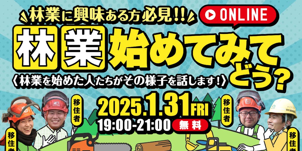2025/01/22【福島県田村市オンライントークイベント】 未経験から「林業」へ!4人の現役きこりが本音で語る、林業の魅力と移住のリアル