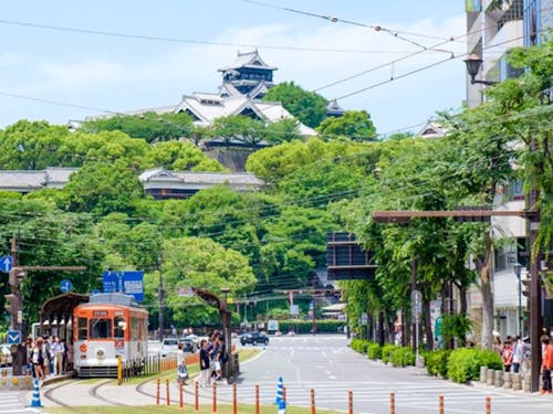 市の中心部には、熊本のシンボル・熊本城や西日本最大級のアーケード街、 少し郊外に離れると美しい湧き水で満たされた江津湖(えづこ)やハイキング・登山ができる金峰山(きんぽうざん)、植木温泉という温泉もあります。 さらに車で1~2時間の距離には、自然を満喫できる阿蘇や天草などの観光地もあります。 新幹線でもアクセスも便利で、熊本駅から博多駅や鹿児島中央駅まで約1時間で行くことができます。