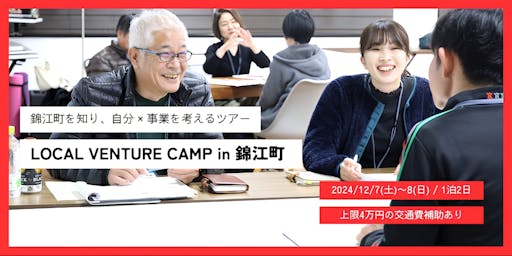 ④最終選考会 日時:令和7年2月16日(日) 場所:錦江町内 内容:メンターからのフィードバックを踏まえ、一次選考合宿から最終選考会までの1ヶ月間、ご自身で事業プランをブラッシュアップしていただきます。当日は最終プレゼンテーションのみを行い、審査の上採択者を決定します。 *交通費補助あり(上限40,000円/名)