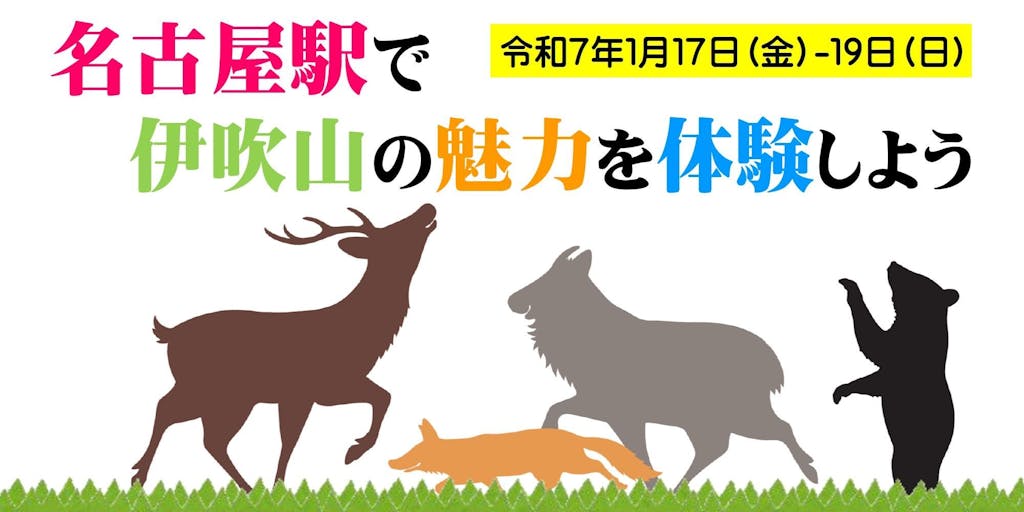 2025/01/17米原市の自然を象徴する「伊吹山」の深い森の奥に暮らす野生動物。その世界をかいま見るような展示等を、大都市名古屋の中心地である名古屋駅中央コンコースで開催します。 大都市と田舎、自然を対比する中で、本当の豊かさとは何か、少し立ち止まって考えるきっかけになればと考えています。 開催期間中は、米原市職員と地域おこし協力隊が常駐し、米原市や伊吹山に関する様々な情報やワークショップのご案内等をさせていただきます。 移住を具体的に考えている人だけでなく、自然との共生、新しいライフスタイルに関心のある人、都会と田舎のコントラストに面白みを感じる人など、幅広い方々と米原市との関係づくりができればと考えています。