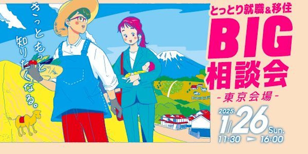 2025/01/26「鳥取県IJUターンBIG相談会 in 東京」とは? 鳥取県内の市町・企業が集う最大級の就職・移住イベントです。 田舎暮らしを始めたい方、就職・転職したい方、地方に移住したい方などが、 市町や企業、先輩移住者との個別相談や、先輩移住者によるセミナーの参加が一度にできる相談会です。