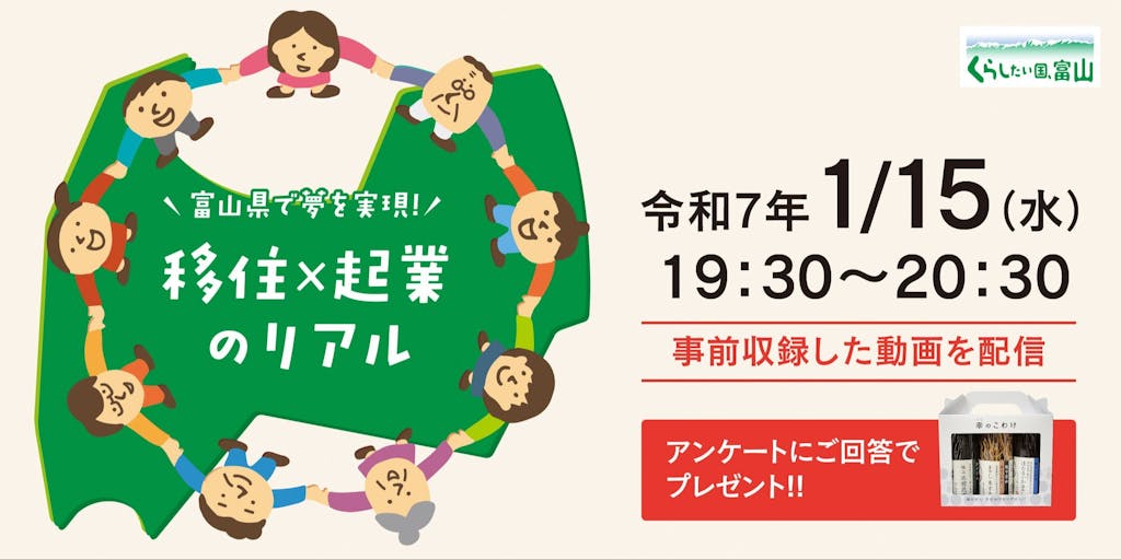 【プレゼント有】「富山県で夢を実現!実践者が語る移住×起業のリアル」を開催【1/15:水】