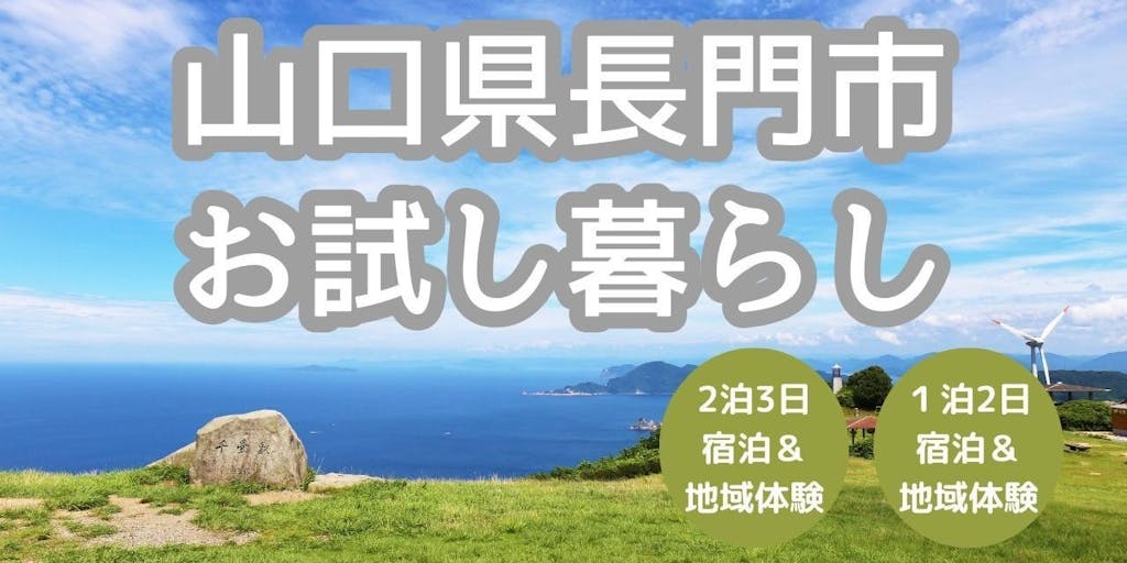 詳細&お申し込みは長門市定住支援サイトをご覧ください↓ https://www.nagatoteiju.com/support/support-ijushien/otameshi