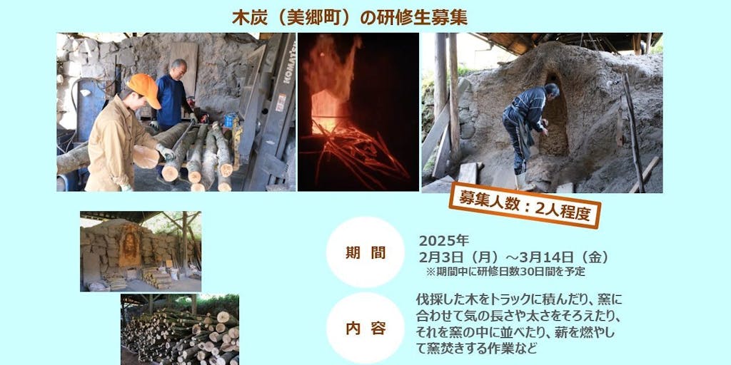 木炭(美郷町) 2025年2月3日(月)〜2025年3月14日(金) ※期間中に研修日数30日間の研修予定