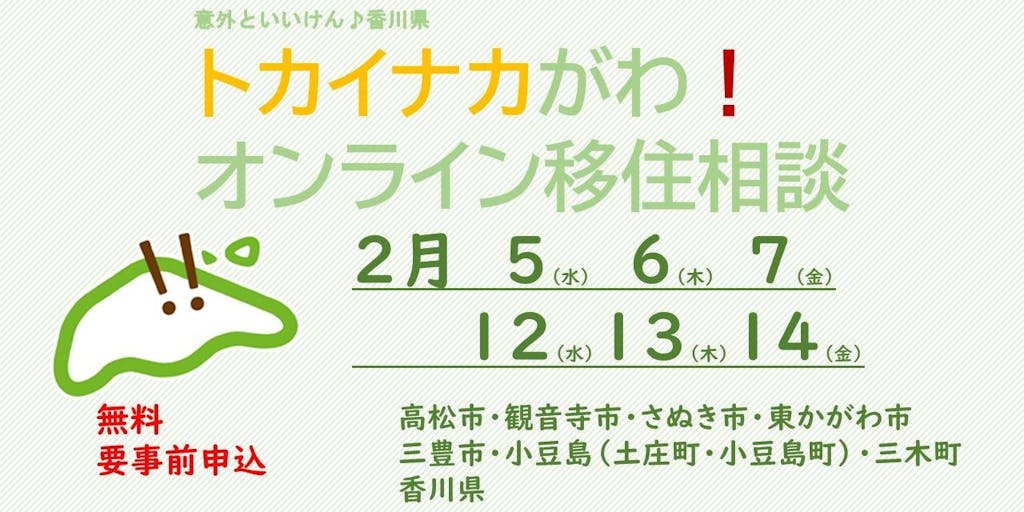 香川県と地域の担当者によるオンライン移住相談を2月5日(水)~7日(金)、2月12日(水)~14日(金)に実施します。