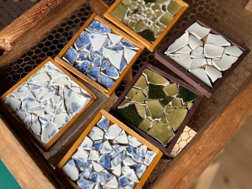「廃食器を割って作るアップサイクルセミナー~コースター兼ウォールアートづくり~」(約1時間程度で完成) ・欠けてしまった、割れてしまった、使う人がいなくなってしまったなど、「もう使えないけど、捨てられない」廃食器のアップサイクルを楽しみます。 ・廃食器を金槌で割り、木枠に収め、UVレジンで固めます。 ・そんな、廃食器と再度日常を共にするためのアップサイクルです。 ※ご自宅に使用したい廃食器があれば、当日会場にお持ちください!