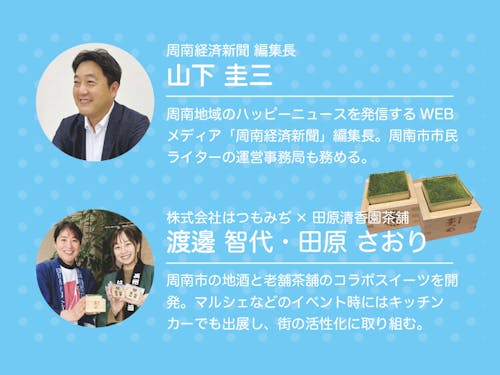 【ゲスト】山下 圭三(周南経済新聞 編集長)/藤井 蔵吉(ジェラテリアクラキチ)/渡邊 智代(株式会社 はつもみぢ)/ 田原 さおり(田原清香園茶舗)/福田 亜加音(Les Mon Coeur:レ・モンクール)