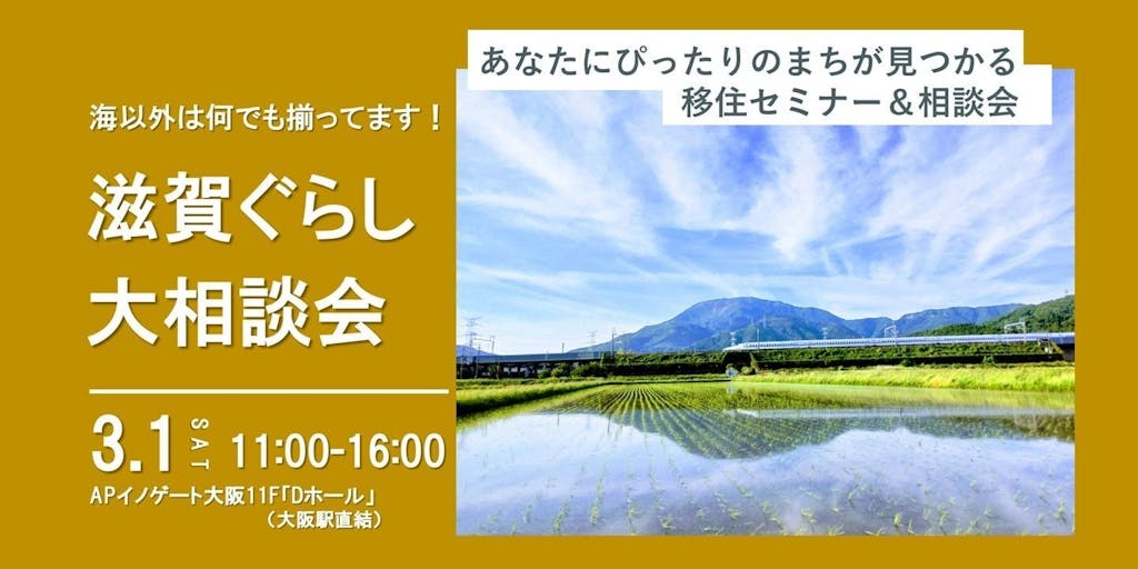 【3月1日(土)大阪開催】11市町が出展!”海以外は何でも揃ってます! 滋賀ぐらし大相談会”