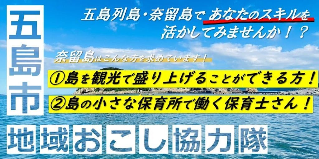 【奈留島の観光推進】 https://www.city.goto.nagasaki.jp/s051/030/040/010/20231030161257.html 【奈留島の保育士さん】 https://www.city.goto.nagasaki.jp/s051/030/040/010/20241223185446.html