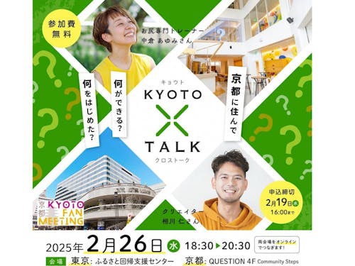 また、今回は京都会場、東京会場の2会場で開催し、東京会場は京都ファンミーティングとコラボ開催します。両会場をオンラインでつなぎますので、色んなゲストのお話をお聞きいただけます!