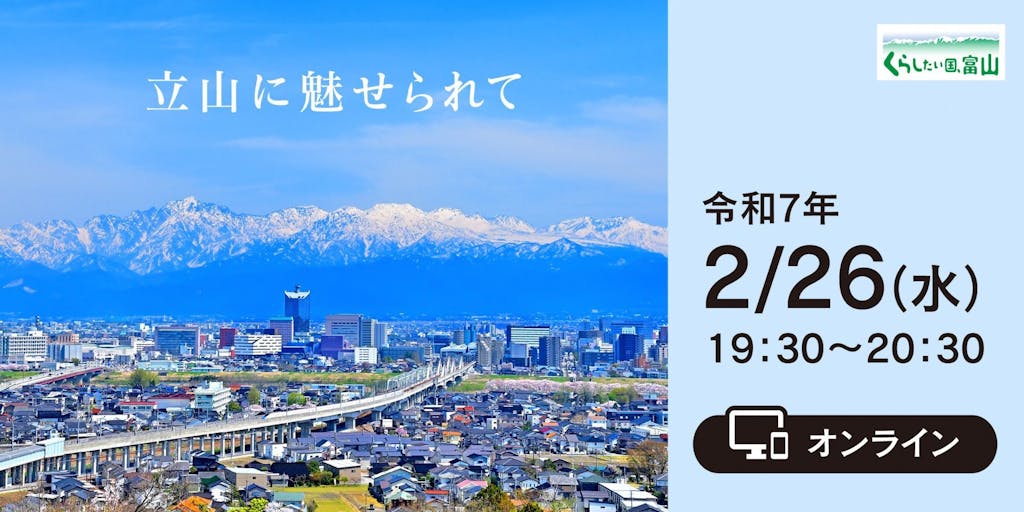今回は立山に魅せられて富山県に移住した先輩をお招きし、 移住のきっかけや立山のある暮らしの魅力などの実体験をお伺いします!