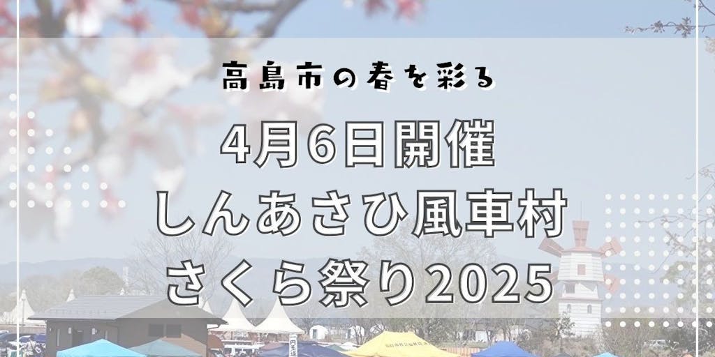 2025/03/26滋賀県高島市に春の訪れを告げる「しんあさひ風車村さくら祭り」が4月6日(日)「道の駅しんあさひ風車村」(滋賀県高島市新旭町藁園336)で開催されます。