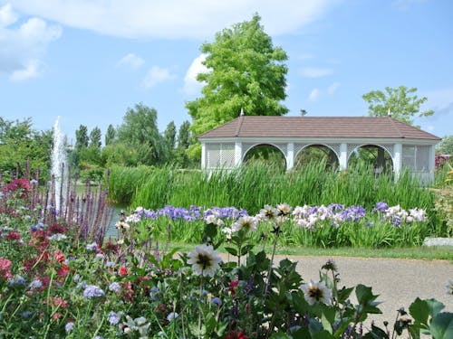 見附市民の憩いの場、 「イングリッシュガーデン」。 本格的な英国庭園様式のガーデンで、1000種を超える植物たちが、季節ごとに色を表情を変え訪れる人を楽しませてくれます。 4月~5月はチューリップ、 5月~6月はバラ、 7月は西洋アジサイ、 9月~10月はダリア などなど!