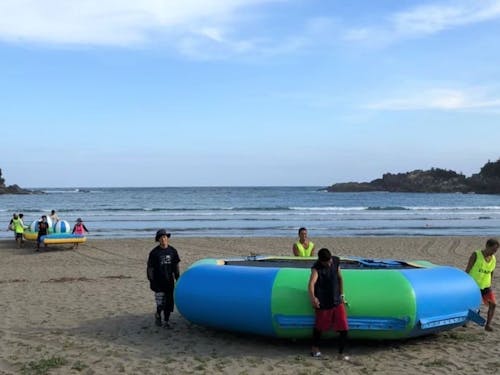 地域おこし協力隊としてのメインの仕事は、夏の海上アスレチックの運営です。任期2年目になる今年は、せっかく移住してきたからにはこの町に何か爪痕を残したいと思い、2つのことに挑戦しました。 1つは、海上アスレチックの運営に町外の人にも参加してもらうこと。これまでの運営スタッフは地元の方が中心でしたが、今年は「ふるさとワーキングホリデー」や「インターンシップ制度」を活用し、で町外・県外の方にも多く参加していただきました。大阪体育大学をはじめ、いくつかの大学との連携もできたので、来年以降も町外・県外から人が集まる流れを作って地域の活性化に貢献出来たらと思っています。 2つ目は、夏の期間以外も白浜の海を盛り上げたいと思い、ビーチサッカーの誘致をしています。秋や冬になると白浜って何もイベントがないんですよね。そこを盛り上げたい、かつスポーツなら自分も楽しくできるかなと思いビーチサッカーに目をつけました。今年の11月には白浜でビーチサッカーの大会を開催予定です。目標はアンダー12の大会を白浜で開催することです! ※予定通り、無事に大会が開催されました!(2025年4月現在)