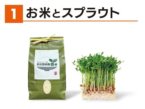 【1】お米とスプラウト ・「かずみ農園」さんの射水市産コシヒカリ1kg ・富山で唯一のスプラウト農家「シテン株式会社」のスプラウト 【2】「F-35」野菜定期便の1か月お試し 富山の35歳以下の若手農家集団「F-35」による野菜定期便のお試しセット1か月分無料でお届け! ※定期便の内容品は季節によって変動します。ご了承ください。