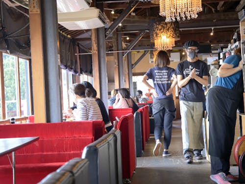 体験当日は、主にわかうら食堂の仕事のお手伝いをしていただきます。参加者の希望によって、キッチンかホールの業務が選択できます。お店自体は、朝8:30から夜10:00までの通し営業となりますが、そのうちの一部の時間を担当いただくかたちとなります。休日ともなると、80席ある店内があっという間に満席になるという人気のお店で、小さな子ども連れのご家族から高齢の方まで、幅広い層のお客さんが訪れると言います。活気ある環境で働きたいという方には、ぴったりの職場と言えるでしょう。