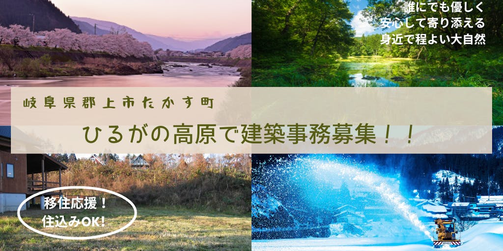 2025/05/27自然に囲まれた岐阜県郡上市高鷲町ひるがので、私たちと一緒に働いてくださる「建築事務スタッフ」を募集します。