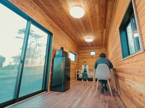 トレーラーハウスmoccaの内装は、田村市産のブランド杉を使用。杉材の包み込むような柔らかさと、味わいが感じられる移住検討者向けの施設です。