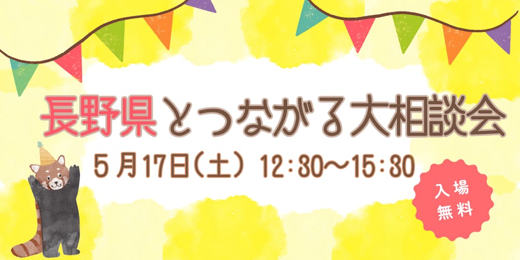 2025/05/05長野県への移住やつながりを考える人に向けた相談会です◎ 様々な市町村を比較しながら、対面で自治体職員と個別相談できます! さらに、移住の気になるアレコレを少人数でお話しできる「テーマ別座談会」も同時開催! 『信州暮らし』に興味がある方 大歓迎!!お気軽にお越しください♪