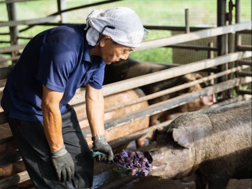 その概要を60分でまるっと紹介します。 循環型畜産の仕組み、有機JASパインが育つ土づくり、加工場でのジュース搾汁や紅芋ペースト製造、開業準備中の精肉店の裏側、飲食店に届くまでの営業ストーリー…。
