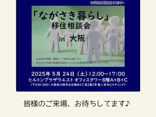 ・事前予約が必要です。(申込締切:2025年5月19日(月)13:00まで) 事前予約URL:https://nagasaki-iju.jp/event/event-9337/ ・お申込み後1週間以内に受付完了のご連絡を担当者より差し上げますので、必ずご確認ください。